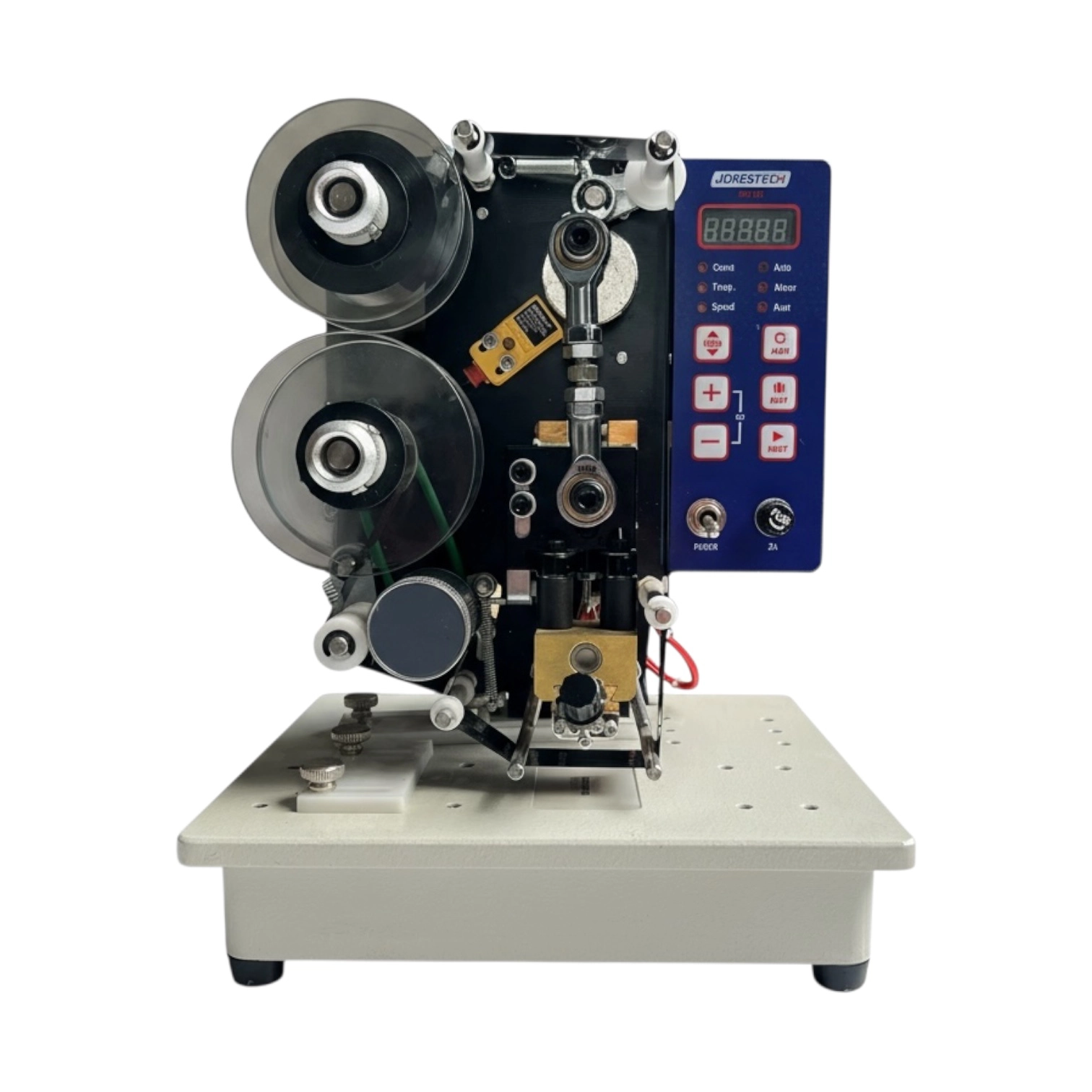 Codificador hot stamping semiautomático (panel digital): Herramienta precisa y eficiente para codificación rápida en diversos materiales. Ofrece control digital fácil de usar, ideal para aplicaciones industriales que requieren marcados claros y duraderos.