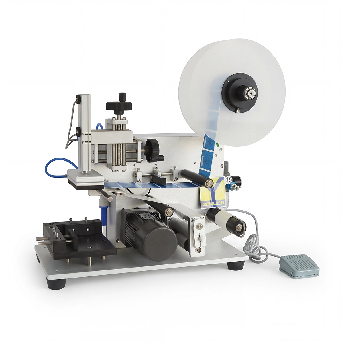 La etiquetadora semiautomática MT-60 está diseñada para la aplicación precisa de etiquetas en superficies planas. Es un equipo versátil, fácil de operar y adaptable a una amplia variedad de productos, ideal para pequeñas y medianas producciones. Ofrece alta precisión de posicionamiento, operación segura mediante pedal y posibilidad de integración de sistema de codificación en la versión MT-60C.